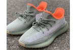 This 350 V2 dons similar hues as the Beluga colorways, only this time ditching a bright orange side stripe and adding a highlighted interior. This Yeezy 350 V2 is composed of a desert sage Primeknit upper with a tonal side stripe. A translucent Boost cushioned sole and orange interior completes the design. These sneakers released in March of 2020.