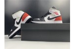 The Air Jordan 1 Mid SE Union Black Toe is constructed of white leather with light grey suede overlays. The white leather makes up the toe, collar and mid-panel. Details include zigzagged stitching on the liner and a red Wings logo on the ankle. A white midsole and black outsole completes the design.