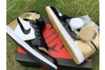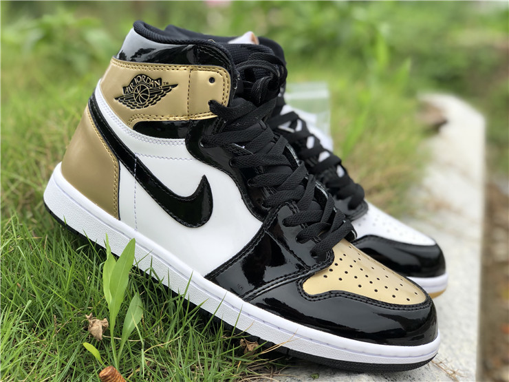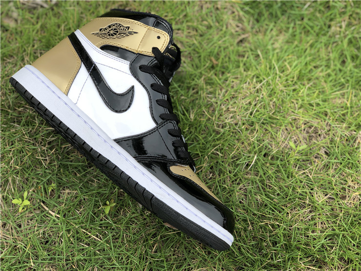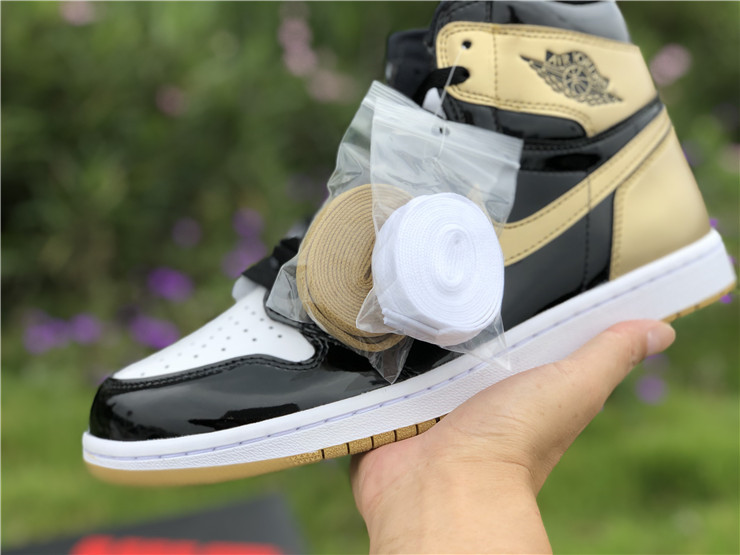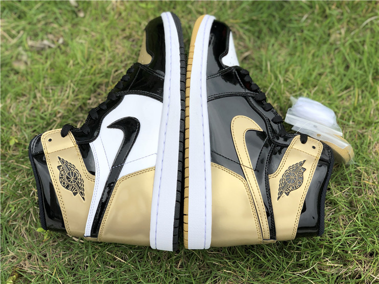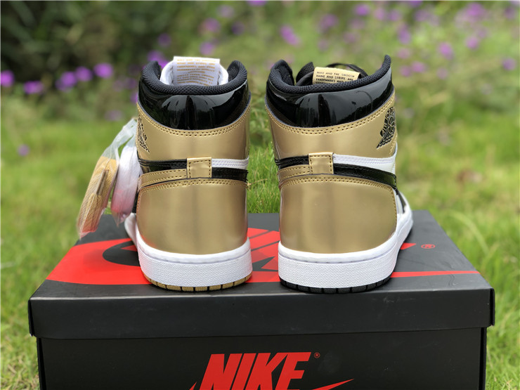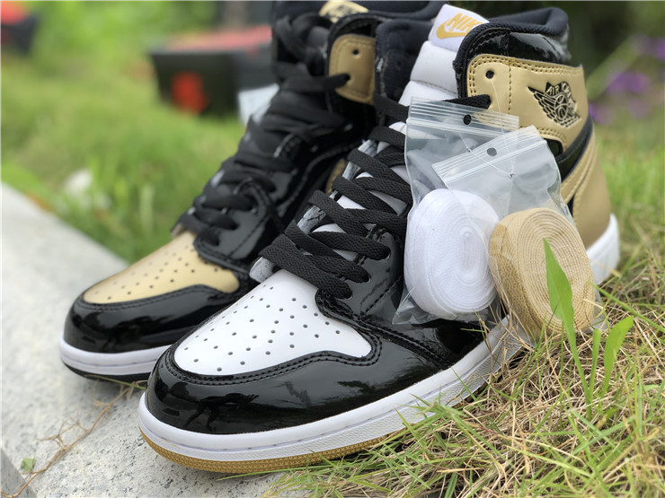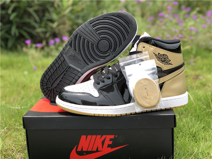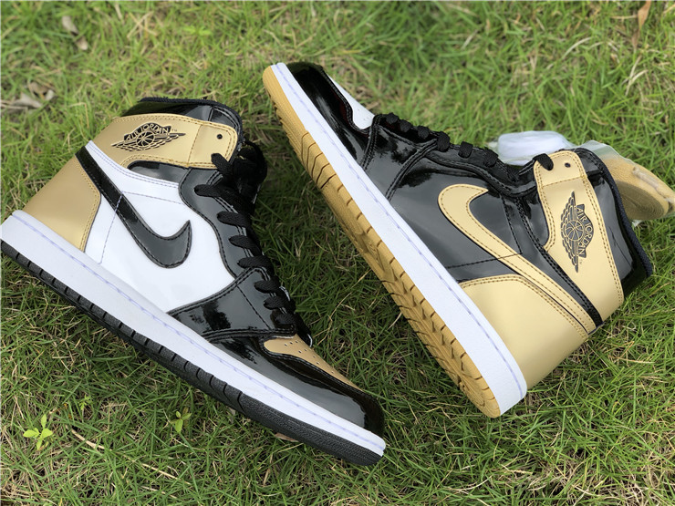 The Nike Air Jordan Retro High OG NRG in ‘Gold Top 3’ was initially an exclusive release at ComplexCon, and then was subsequently released online for Cyber Monday 2017. The Air Jordan 1's coveted black and metallic gold patent colorway is re-imagined in this mis-matched patent leather construction, an homage to the Air Jordan 1 'Top 3' sneaker from 2016.