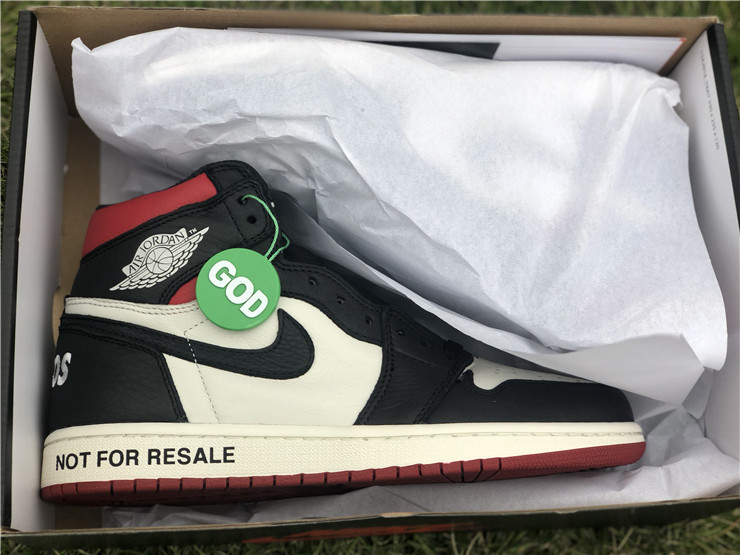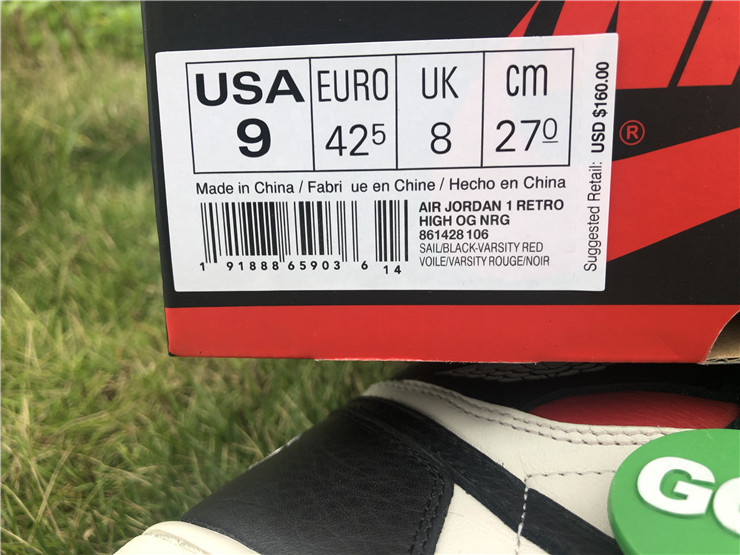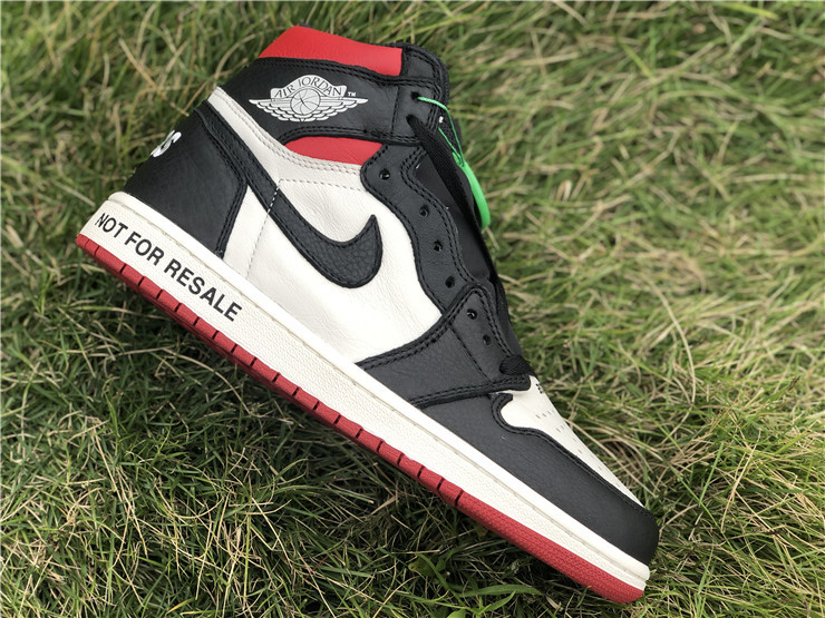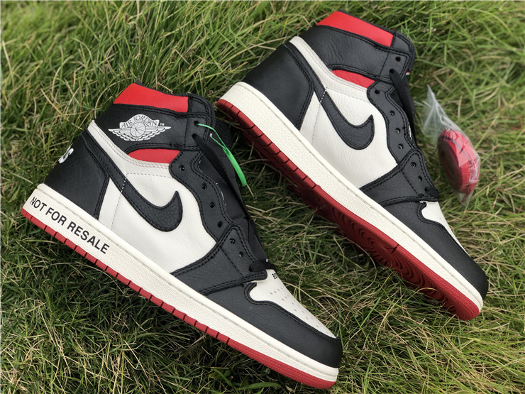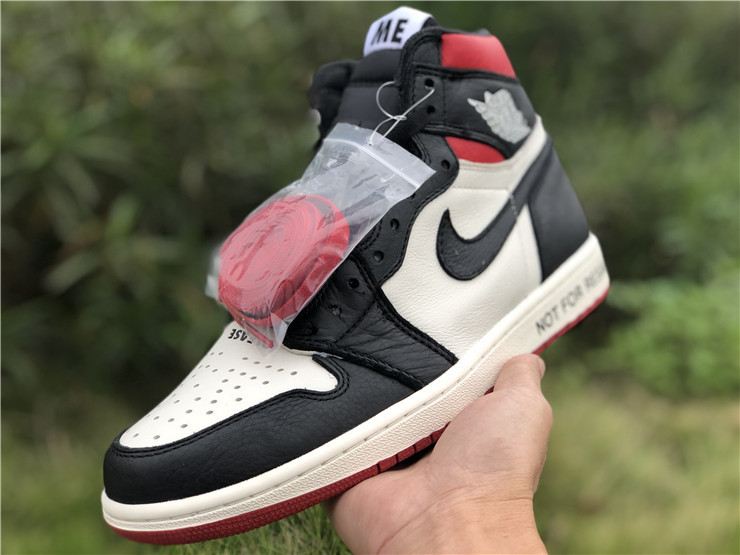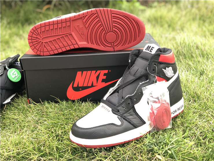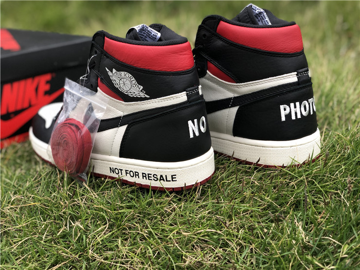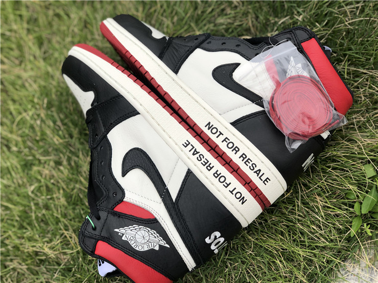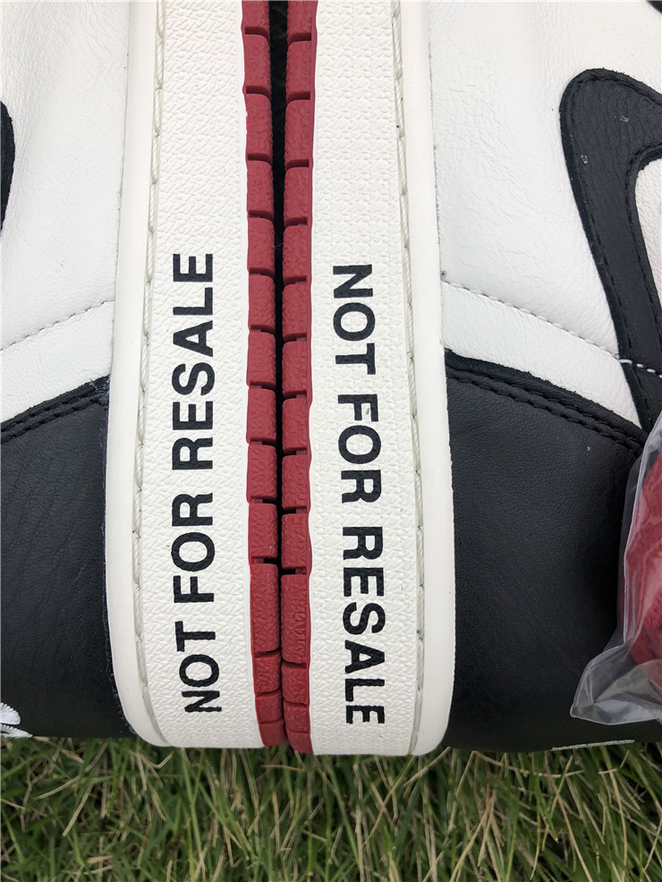 The Air Jordan 1 Retro High NRG ‘Not For Resale’ features not-so-hidden messages printed across the upper and midsole. They include ‘No Photos’ embroidered across the heel of the left and right shoe, ‘Wear Me’ across the tongues and ‘Please Crease’ stamped on each toe box. The printed phrases are used to embellish classic color blocking that accents a white leather base with contrasting black overlays and a pop of Varsity Red around the collar.