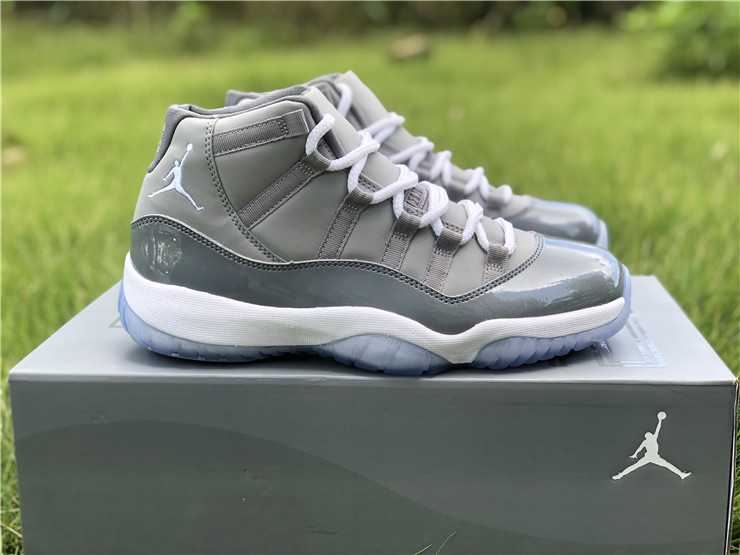 The 2010 reissue of the Air Jordan 11 Retro ‘Cool Grey’ revives a fan-favorite colorway initially released in 2001. Like the original, a monochromatic neutral grey finish suffuses the upper, constructed from nubuck with a glossy patent leather overlay. A full-length Air unit enhances the cushioning properties of a lightweight Phylon midsole. Underfoot, a carbon fiber shank plate is visible through the translucent rubber outsole, equipped with herringbone traction pods under the forefoot and heel.