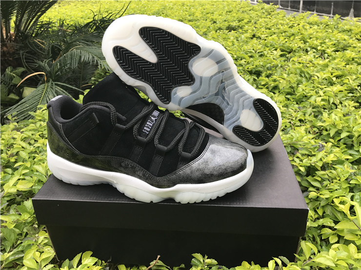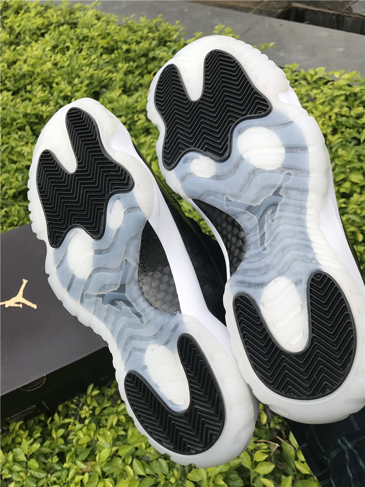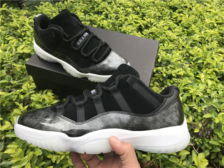 Released in May of 2017, the Air Jordan 11 Retro Low ‘Barons’ take their inspiration from Michael Jordan’s uniform colors during his short-lived minor league baseball career with the Birmingham Barons. The design features a black nubuck upper with grey patent leather overlays, a white midsole, and a white translucent outsole.