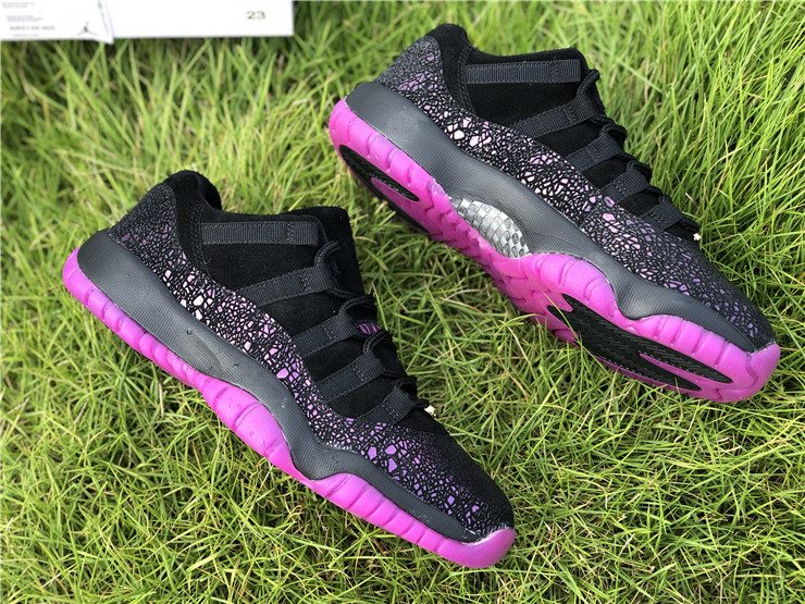 A women’s exclusive unique to the ‘Art of a Champion’ Collection from May 2018, this ‘Rook to Queen’ iteration of the Air Jordan 11 Low takes inspiration from Jordan Brand athlete Maya Moore of the WNBA. It sports a black nubuck upper with a special textured mudguard in bright Fuchsia Blast. Other signature details include Moore’s logo on the insoles along with “2011” lace dubraes, gold lace aglets, and translucent Fuchsia Blast outsoles.