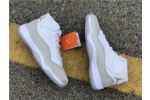 This Jordan 11 features a white upper with a metallic silver finish replacing the traditional glossy patent overlay adding for a luxurious touch. A white midsole paired with a translucent outsole completes the design.