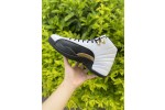 The Air Jordan 12 Retro ‘Royalty’ adds gilded accents to a two-tone design reminiscent of the OG ‘Taxi’ colorway from 1996. The mid-top makes use of a white tumbled leather upper with radiating stitch detailing and black lizard-textured overlays. Contrasting pops of metallic gold land on the molded top eyelets, midfoot TPU piece and the Jumpman and ‘Two 3’ branding embroidered atop the tongue. Responsive cushioning comes courtesy of a full-length Zoom Air unit. Underfoot, the outsole features rubber herringbone traction pods and a carbon fiber spring plate.