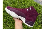 This Air Jordan 12 Retro is known as the "Bordeaux" edition. Inspired by the accent color found on one of the original Air Jordan 7s released in 1992. They come in a bordeaux, sail and metallic silver colorway. Sporting a bordeaux-based suede upper sitting atop a sail colored outsole with metallic silver detailing found on the branding throughout. Their release date was October 28th, 2017 where they were available at select Jordan Brand retailers worldwide.
