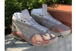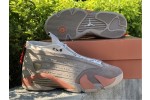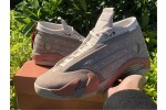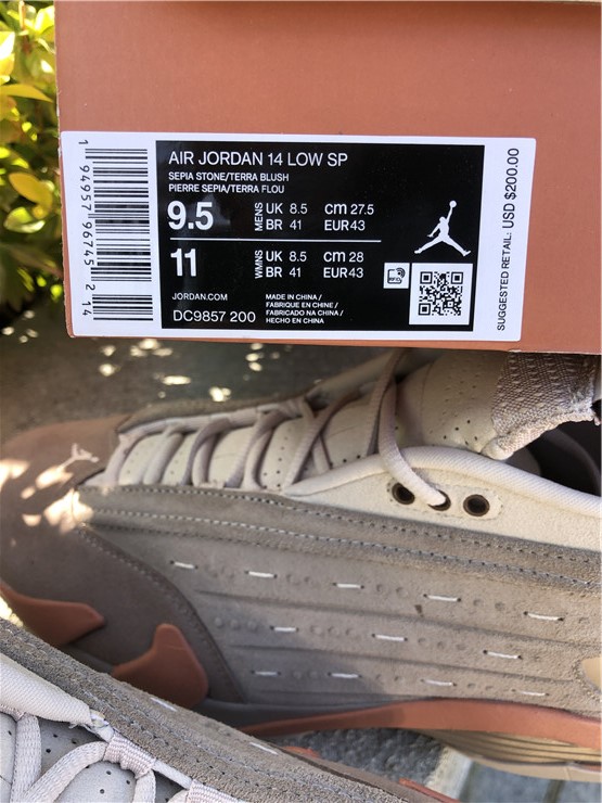 Developed in partnership with Edison Chen’s streetwear brand, the CLOT x Air Jordan 14 Retro Low ‘Terracotta’ is the follow-up effort to the Air Jordan 13 Low ‘Terracotta’ from 2018. Like its predecessor, the low-top features a tan suede upper with embossed detailing that mimics protective armor — a nod to the thousands of life-size clay soldiers buried alongside the first emperor of China. Mismatched Jordan and CLOT branding adorns the tongue, designed to mimic an unfurled ancient scroll. Hanging off the heel is red Chinese knot, the end of which is threaded through a coin that’s stamped with a Chinese idiom for prosperity and happiness.