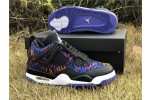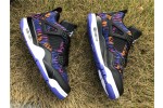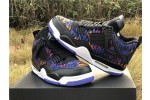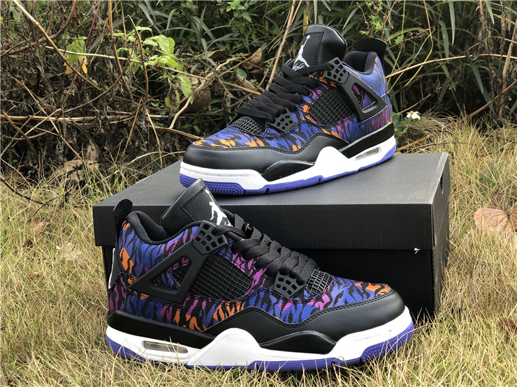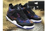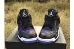 The Nike Air Jordan 4 Retro SE GG is a kids-exclusive presenting Michael Jordan's iconic signature in a playful light. Revealed in November 2019, this edition dons a tiger-striped textile upper with leather paneling, mesh inserts and premium lace wings. Jordan Flight branding remains on the tongue and heel. The sneaker sits on an Air-equipped midsole and herringbone-patterned rubber outsole in Rush Violet.