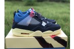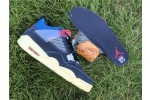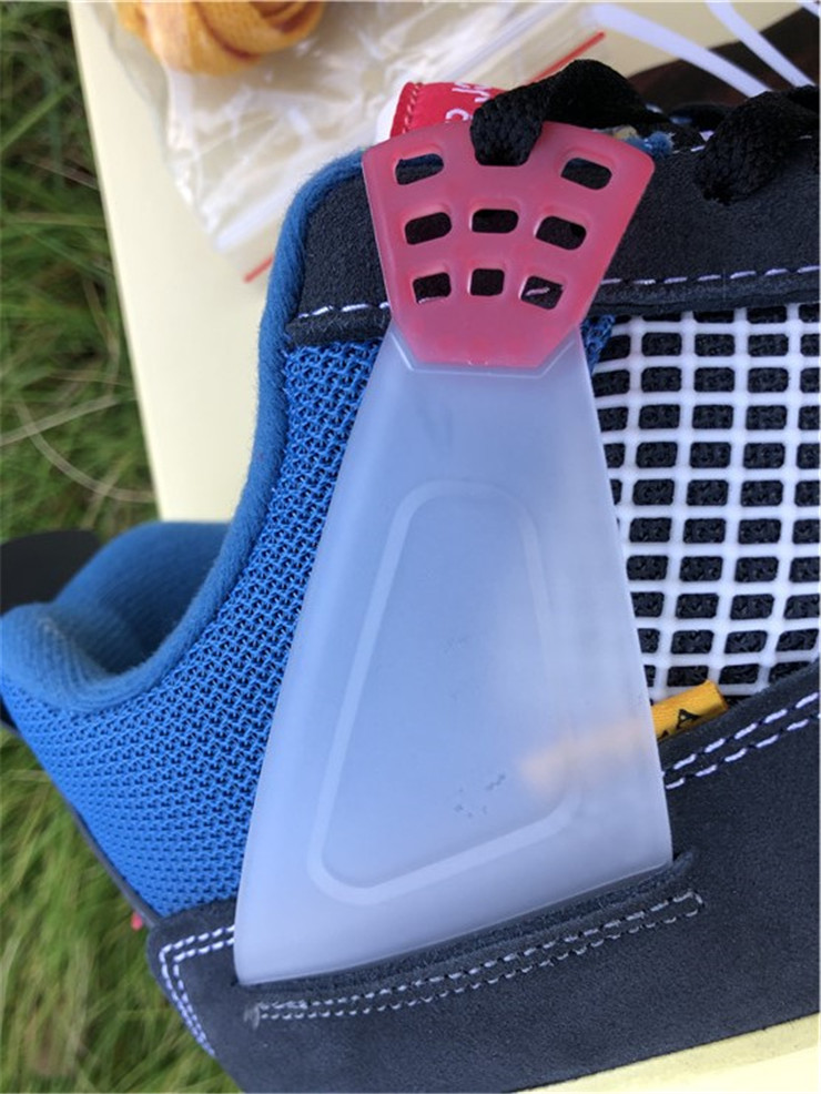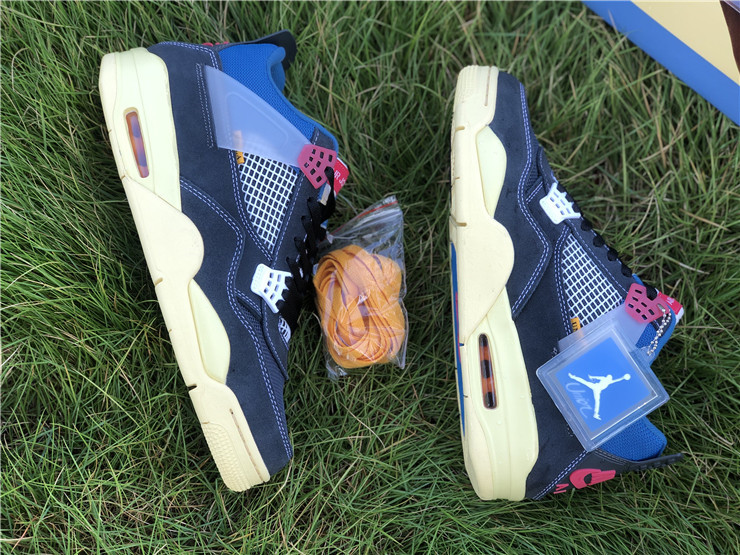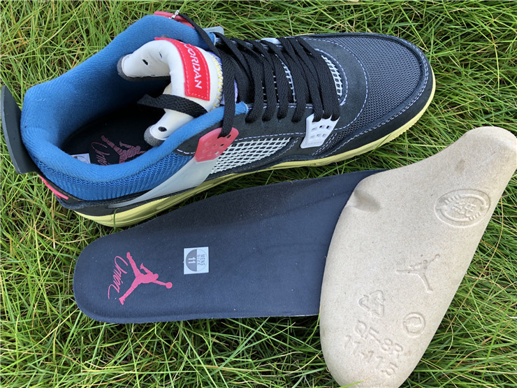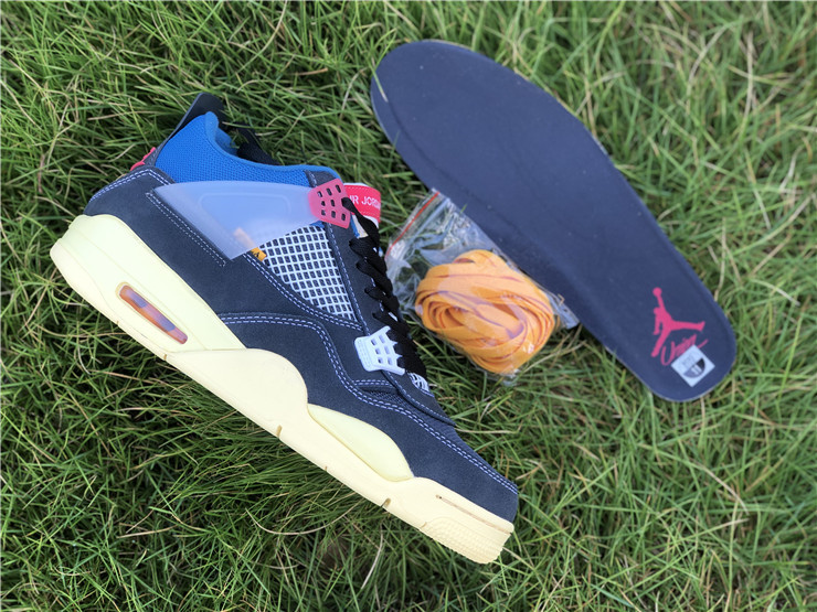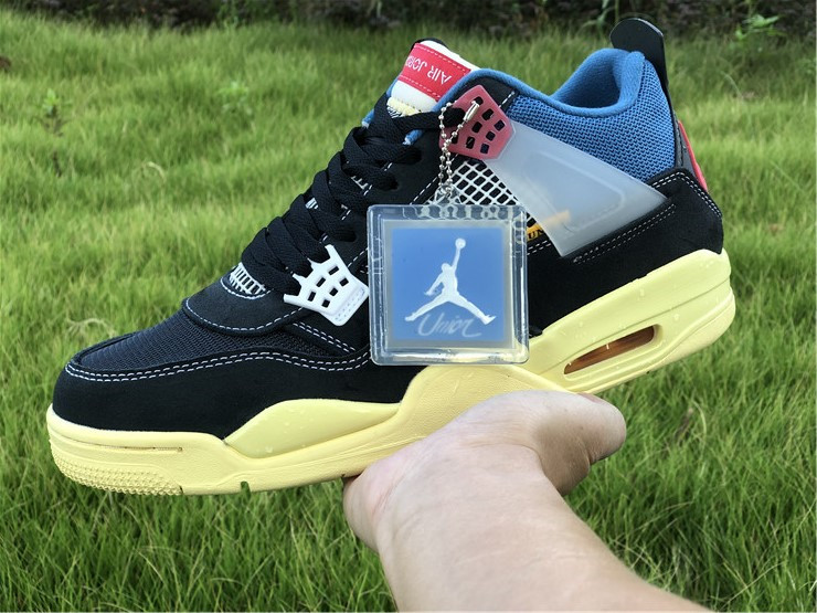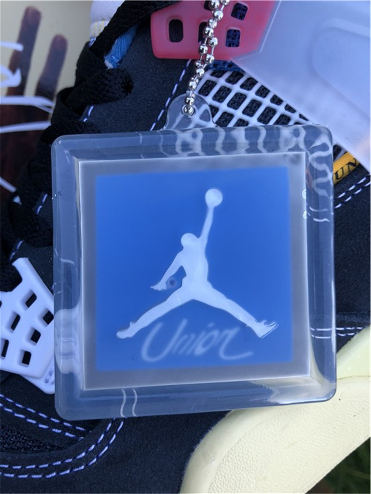 The Union LA x Air Jordan 4 Retro ‘Off Noir’ represents the follow-up effort to the duo’s highly coveted Air Jordan 1 collaboration from 2018. The updated design features a black suede upper with matching black mesh on the toe box and blue mesh around the collar. The semi-translucent structural wings are attached to molded red eyelets, matching the woven Air Jordan tag atop the padded tongue and Nike Air branding on the heel. The TPU wings are filled in, reminiscent of an original Tinker Hatfield sketch of the AJ4, while the AIR JORDAN tag usually found on the inside of the tongue conveys a unique look, like someone folded the tongue over to expose the inside tag. Finally, a 'UN/LA' tag on the side panel shows the Union heritage and a yellowed midsole conveys a vintage aesthetic.