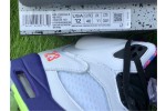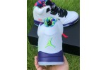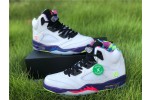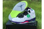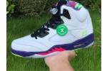 Also known as the Jordan 5 Poison Green, the Alternate Bel-Air consists of the same 90s style colors and patterns as its predecessor, only this time the grey upper is replaced with white leather. A multi-color midsole, icy translucent outsole, and mismatched green and pink Jumpman logos on the tongues complete this retro-style masterpiece.