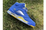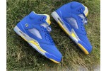 Michael Jordan’s high school, Emsley A. Laney, is the inspiration for Nike’s Air Jordan 5 Retro GS 'Laney' sneaker. Released in February 2019, this kids’-sized shoe features a color palette in the school’s team colors. The genuine and synthetic leather upper features mesh quarter panels for breathability. Its lace-up closure is reinforced with lace toggle for additional support and security. At the bottom, a lightweight Air-Sole unit provides cushioned comfort.