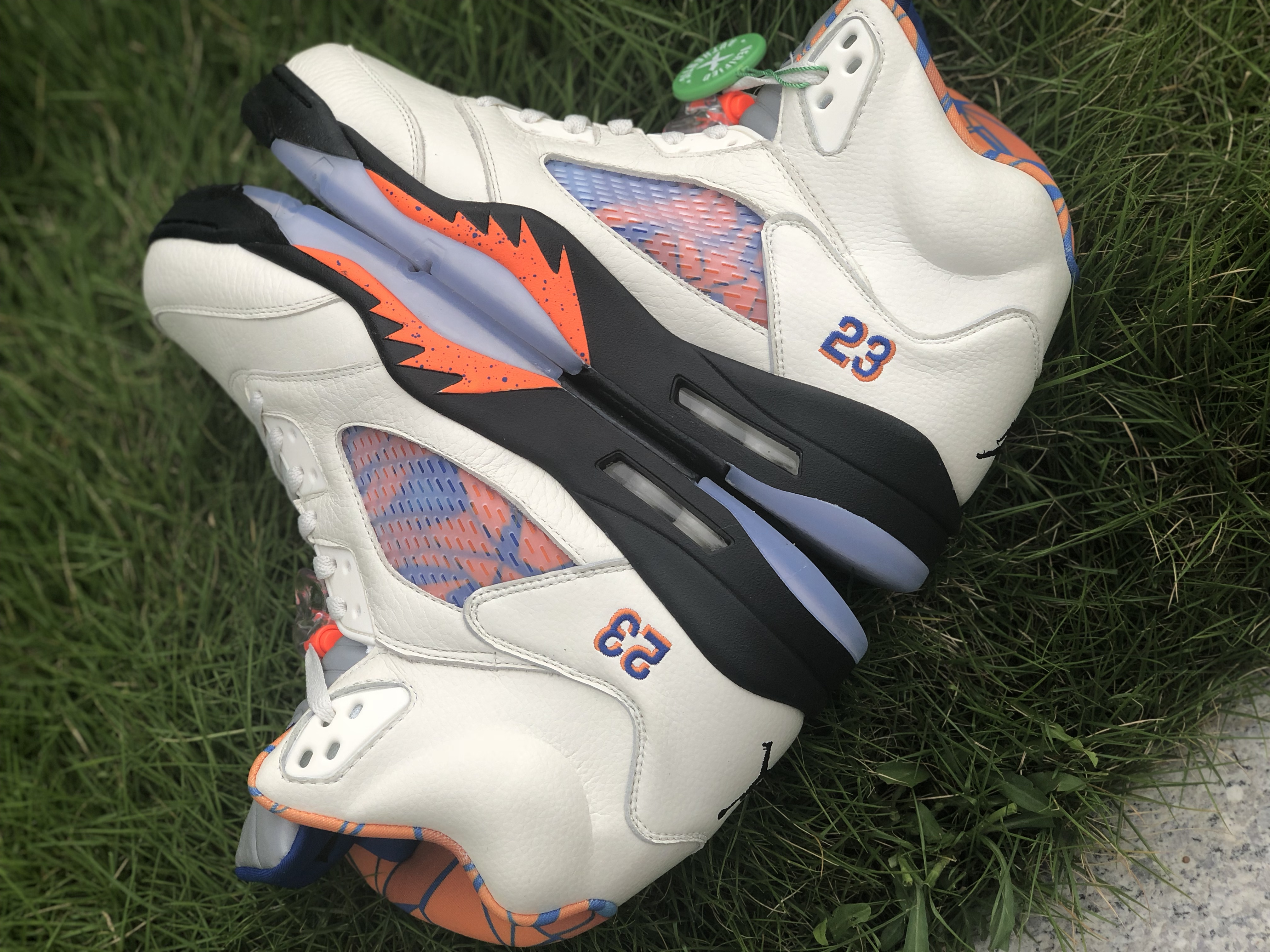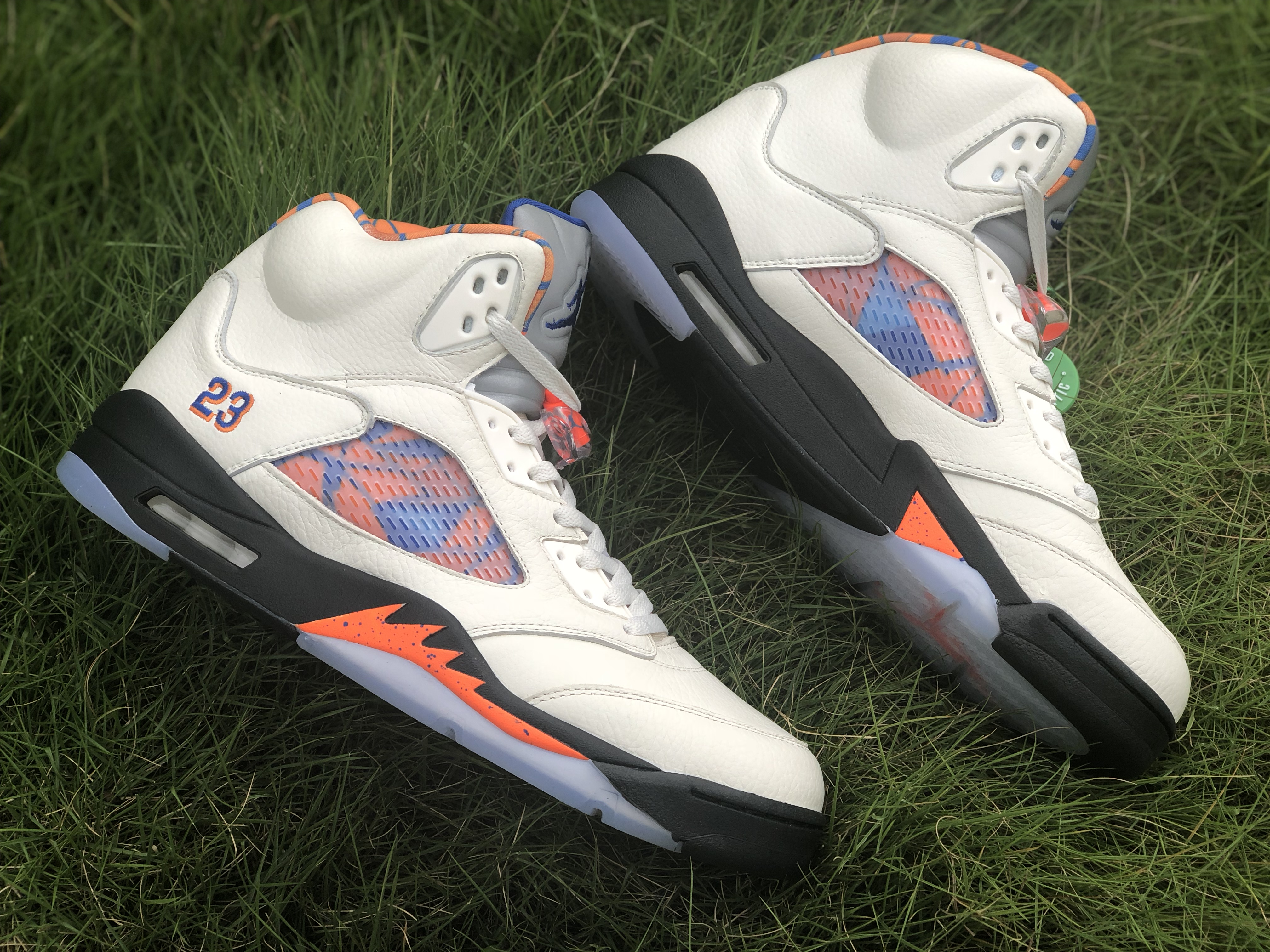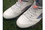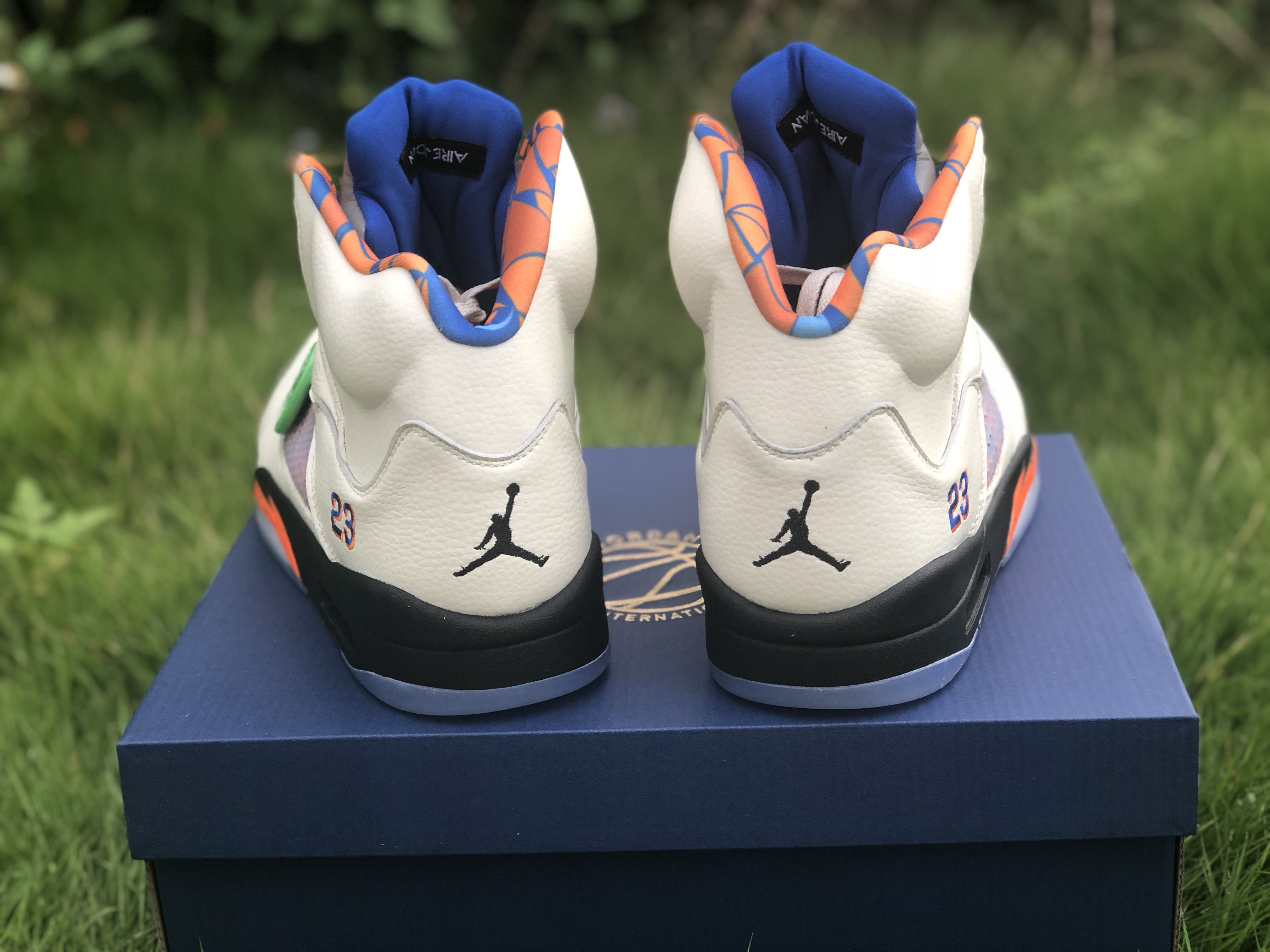 The Air Jordan 5 Retro “Orange Peel,’ aka ‘The International Flight,’ is a tribute to Michael Jordan’s impact on the popularity of basketball around the world. The colorway was specifically inspired by the blue and orange uniforms that Jordan wore for an exhibition game in Barcelona in August 1990 for a Nike Europe promotional tour. The design features a Sail tumbled leather upper accented by a blue and orange pattern based on Barcelona’s iconic street art, visible on the lining and through the quarter panel mesh. The shoe also includes the Jordan 5’s signature 3M reflective tongue, a black midsole with orange shark-tooth detailing and a translucent outsole underfoot.