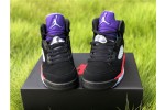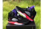 The Air Jordan 5 Retro SE ‘Top 3’ combines design elements from a trio of the silhouette’s OG releases. The nubuck upper is drawn from the Black/Metallic Silver colorway, complete with lace locks, quarter panel netting and Nike Air branding on the heel. The embroidered ‘23’ is taken from the Fire Red colorway, with that shoe’s red midsole mashed up with metallic silver shark-tooth detailing. Finally, the purple tongue is lifted from the ‘Grape’ Air Jordan 5, featuring a teal Jumpman front and center.