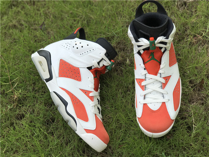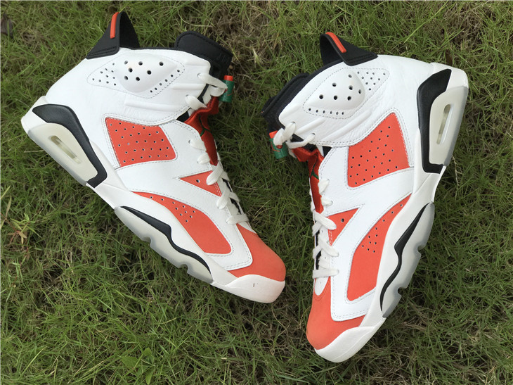 The Air Jordan 6 Retro ‘Gatorade’ pays tribute to Michael Jordan’s 1991 ‘Be Like Mike’ Gatorade commercial. The shoe features the same color blocking as the OG ‘Carmine’ colorway, with a white leather upper, Gatorade-themed Team Orange accents, and a green lace lock. The spot’s slogan – “If I could be” – also hits up the inner tongue. The ‘Gatorade’ dropped with a ‘Green Suede Gatorade' colorway in December 2017.